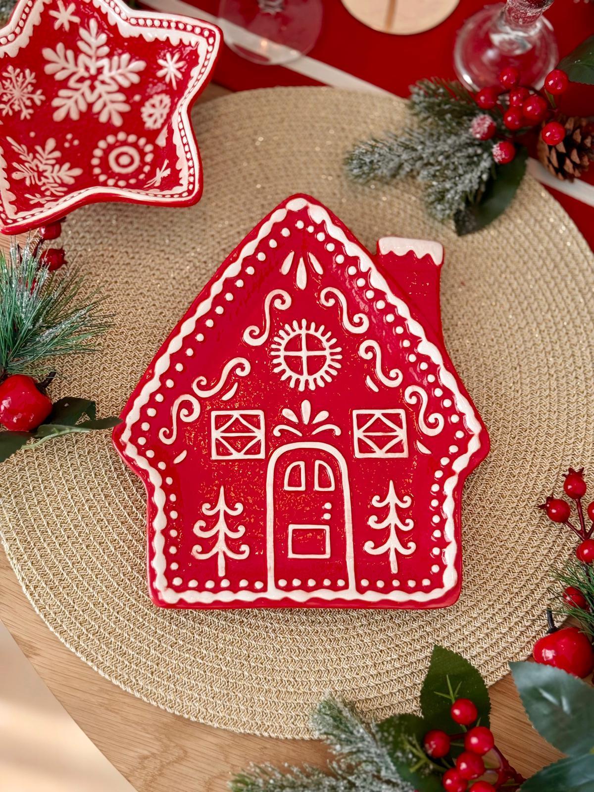 Yılbaşı Ev Formlu Seramik Tabak